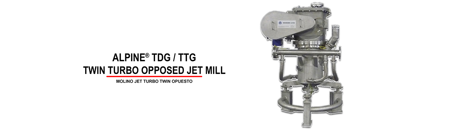 El molino jet turbo twin opuesto Alpine® TDG / TTG está equipado con un cabezal clasificador turbo twin que reduce sustancialmente la caída de presión de la clasificación. Además, el patrón de flujo en la rueda clasificadora turbo twin hace posible operaciones de clasificación extremadamente precisas con altos índices de flujo de aire. La rueda clasificadora se apoya en ambos extremos y permite velocidades muy altas. Esto hace posible construir molinos de chorro extremadamente grandes con una sola rueda clasificadora.