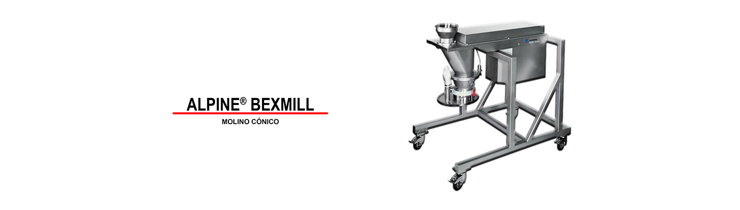 El Alpine® Bexmill es un molino cónico para molienda media o gruesa ofrece una variedad de capacidades de producción, ideal para la reducción de tamaño y granulación de materiales blandos y pegajosos especialmente en las industrias alimentaria y farmacéutica.