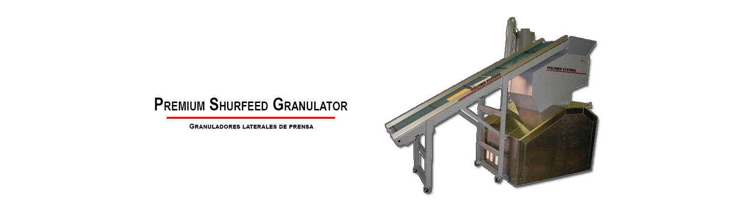 Granulador Shurfeed Premium (Granulator). HPS ha llevado su probado diseño de cámara Shurfeed un gran paso adelante con refinamientos que mejoran drásticamente la eficiencia operativa. Una pared posterior especialmente diseñada suaviza la transición del material al círculo de corte para eliminar prácticamente los rebotes mientras que reduce el choque total al sistema, el ruido y el uso de energía también.